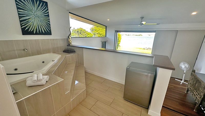 The Edge has three private suites: the perfect place to escape for some solitude. Well appointed with luxurious fixtures and fittings, each of the units has their own private lakeview deck with seating. Inside you are pampered with your own, indulgent spa and king-sized bed, which offer amazing views over the calm, lake waters of Lake Tinaroo. The units are situated on the ends of the main house and are connected via a covered pathway running the entire length of The Edge.